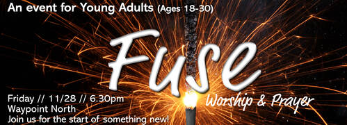 WayPoint Young Adults is connecting young people through Fuse Worship Nights and monthly social events!We're also excited to offer mentorship for young adults through the Waypoint Mentorship program, which connects young adults with trusted older mentors who will walk with them, disciple them, and guide them in whatever chapter they find themselves in, to live their lives for Christ to the fullest. For info on Mentorship, contact Pastor Drew at [email protected].